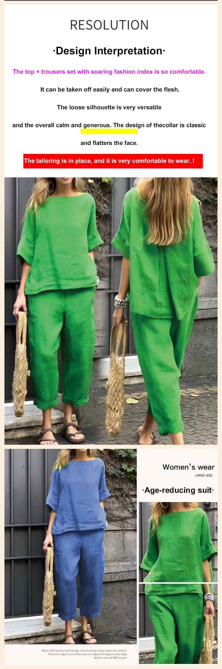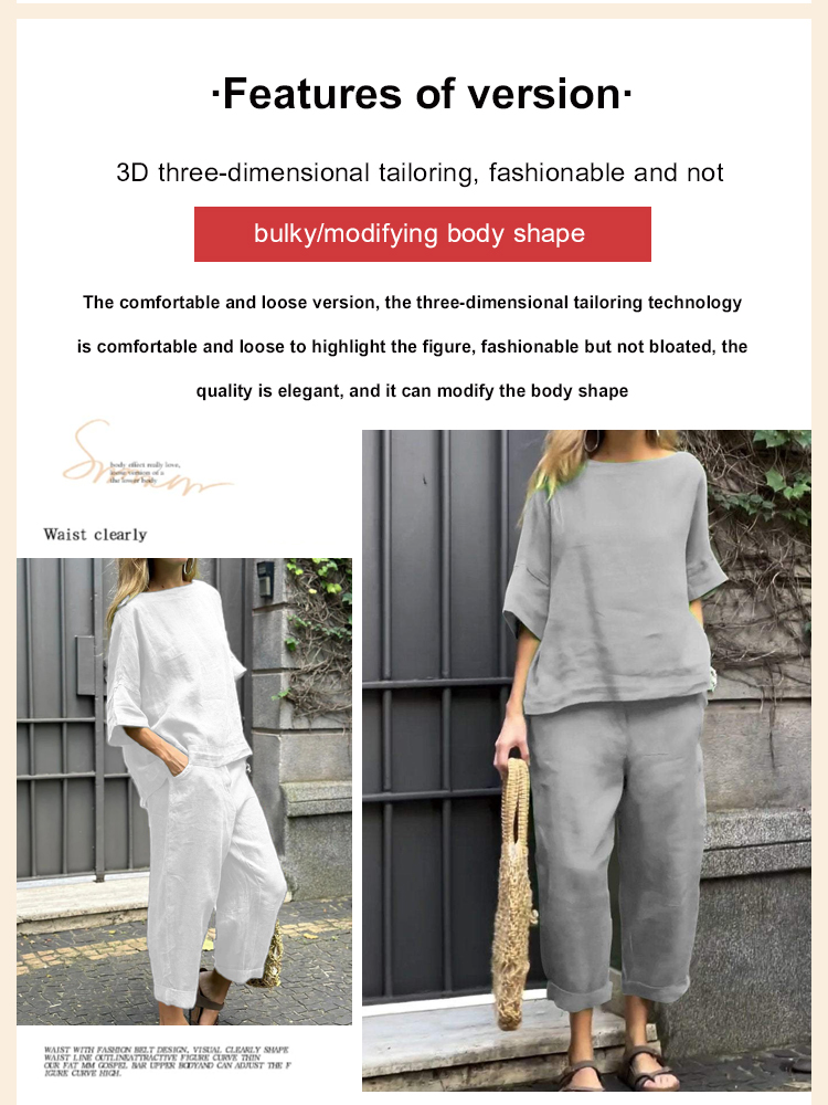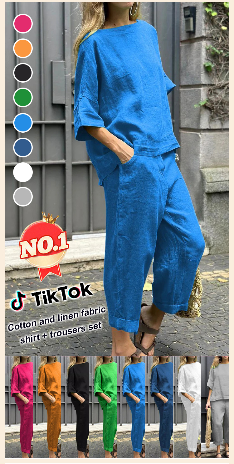 Cotton and linen casual shirt and pants suit